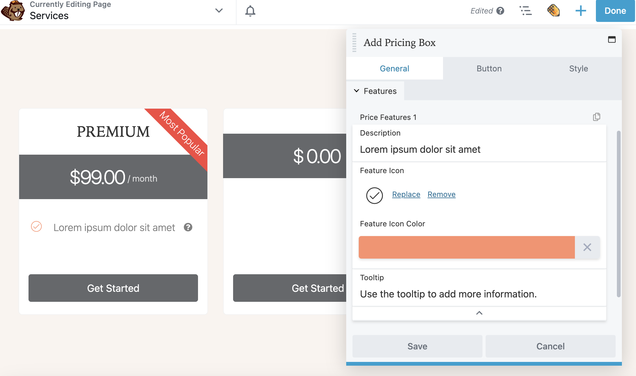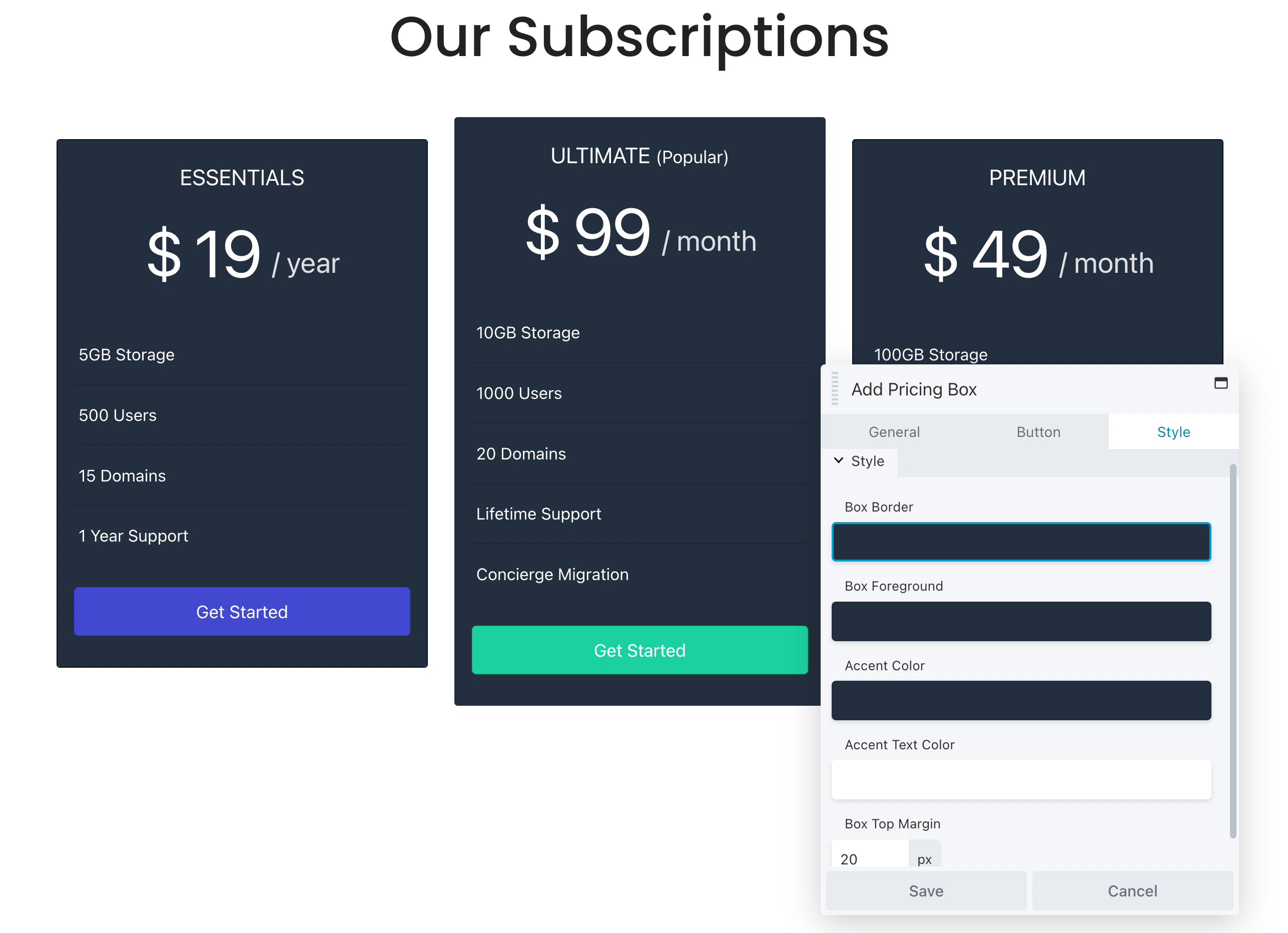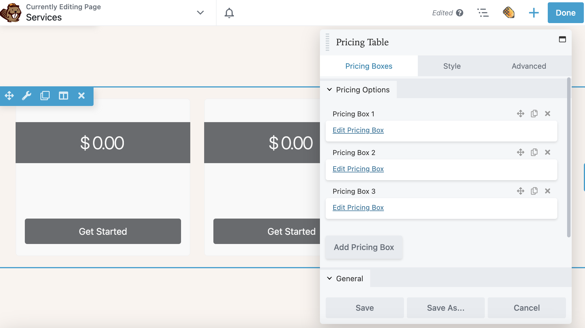 Repeat this process for each box in your pricing table. Then, you can continue to edit the settings for the entire table.