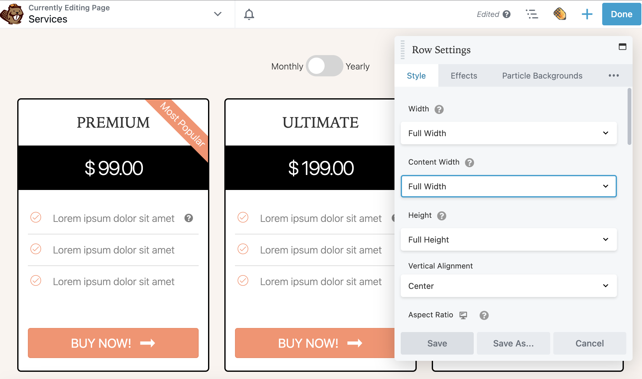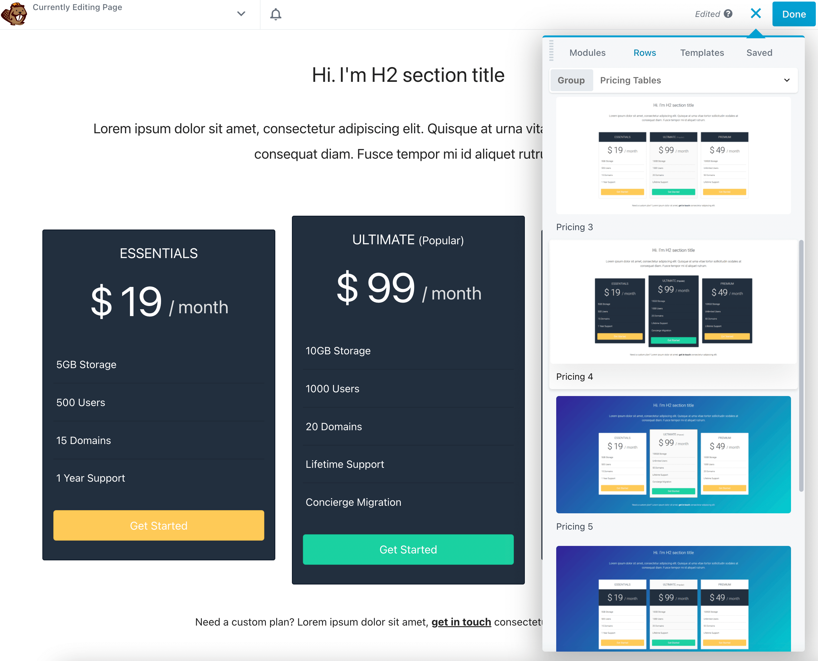 As you can see, the advantage of using a Beaver Builder template is that it allows you to fully design your Pricing page in just a few steps.